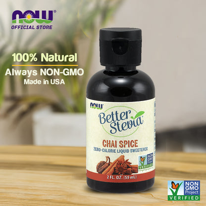 NOW Foods, Better Stevia, Liquid, Chai Spice, Zero-Calorie Liquid Sweetener, Low Glycemic Impact, Certified Non-GMO, 2-Ounce