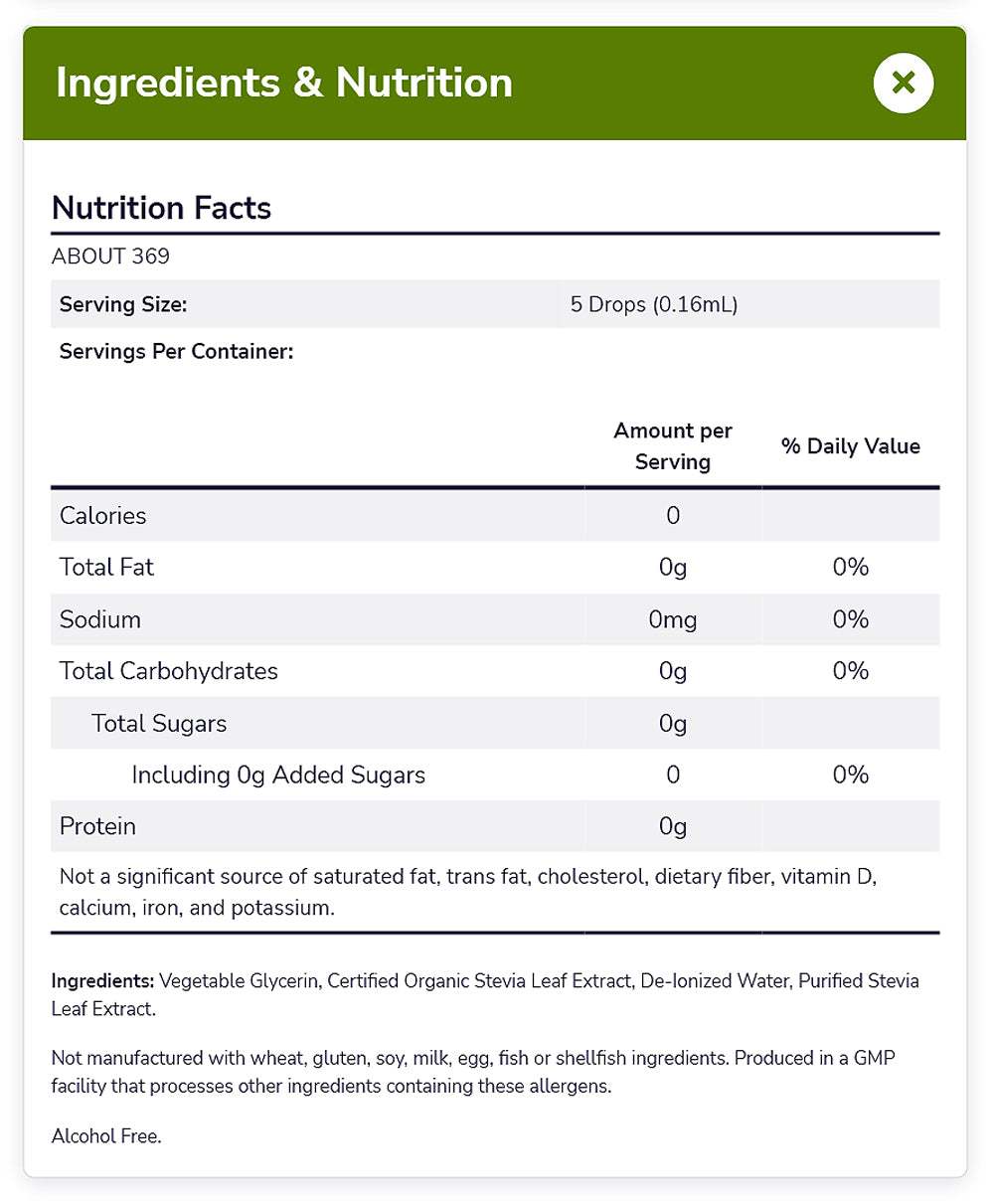 ZERO-CALORIE LIQUID SWEETENER: BetterStevia® Glycerite is alcohol free and a zero-calorie, low-glycemic, plant-based sweetener that makes a perfectly healthy substitute for table sugar and artificial sweeteners. Unlike chemical sweeteners, NOW® BetterStevia® Glycerite contains natural plant stevia extracts. NOW takes special measures to preserve stevias natural qualities in this unique, better-tasting stevia.