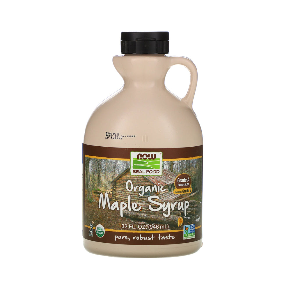 NOW Foods, Certified Organic Maple Syrup, Grade A Dark Color, Certified Non-GMO, Pure, Robust Taste, 32-Ounce (946ml)