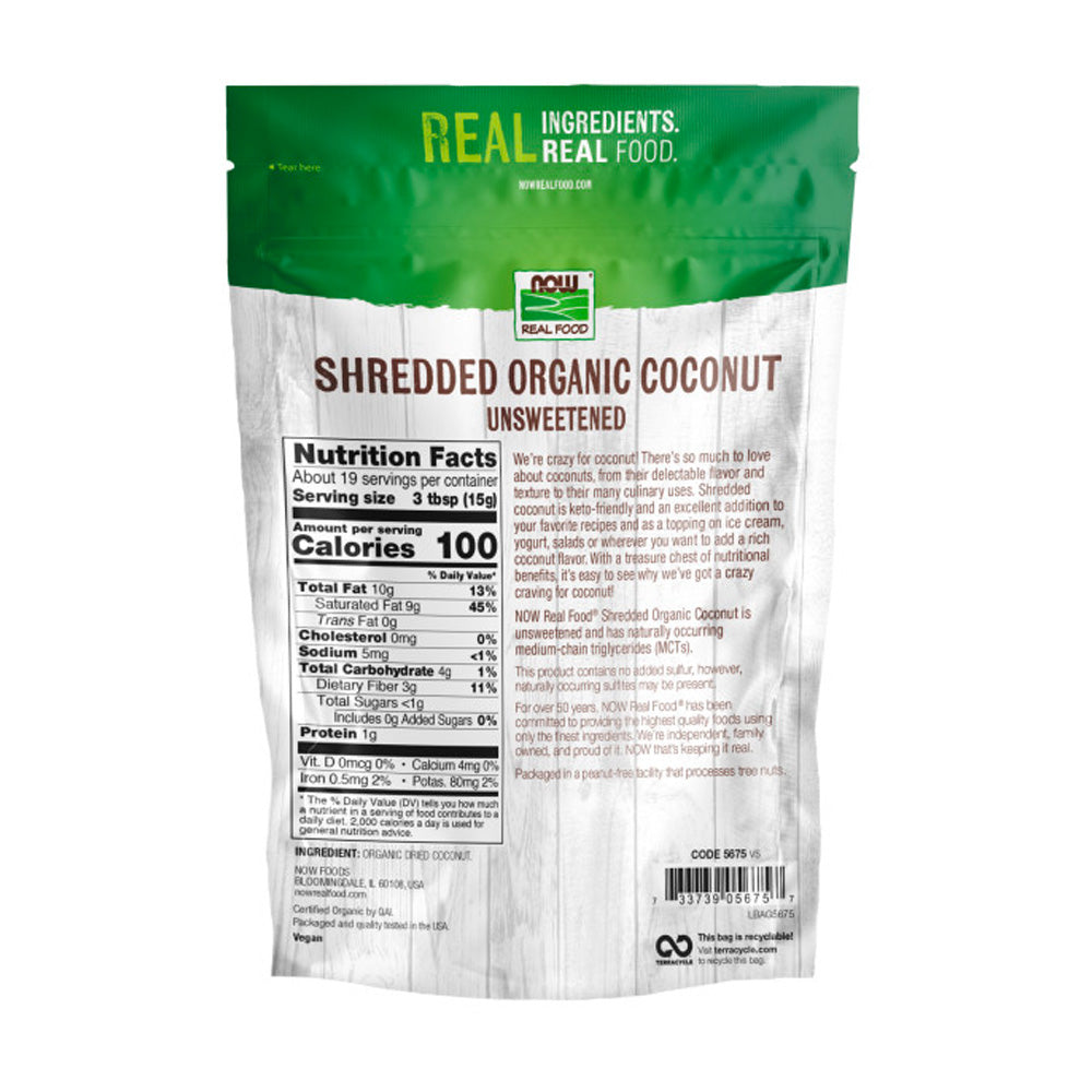 NOW Foods, Organic Coconut, Unsweetened and Shredded, No Added Colors, Flavors or Preservatives, 10-Ounce (284g)